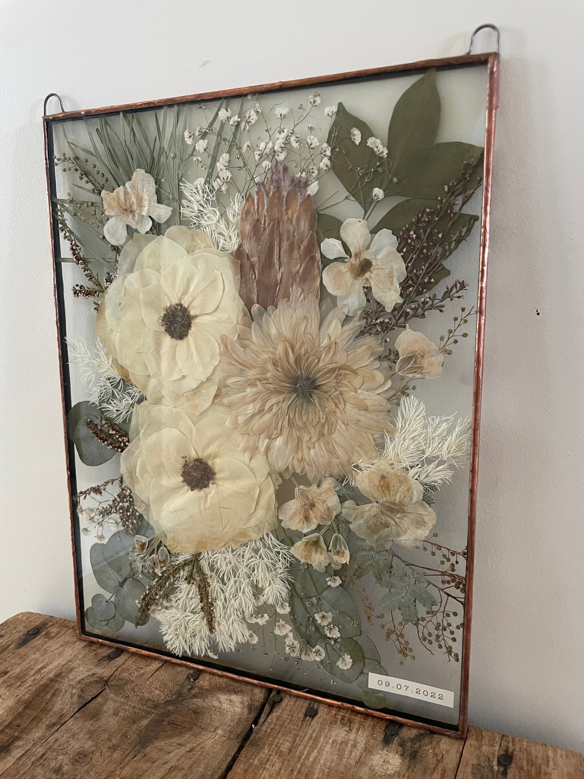Gift vouchers can be given to a bride-to-be or a couple so they can get their bouquet preserved! Timber and metal frames are available. See size and price options here.
