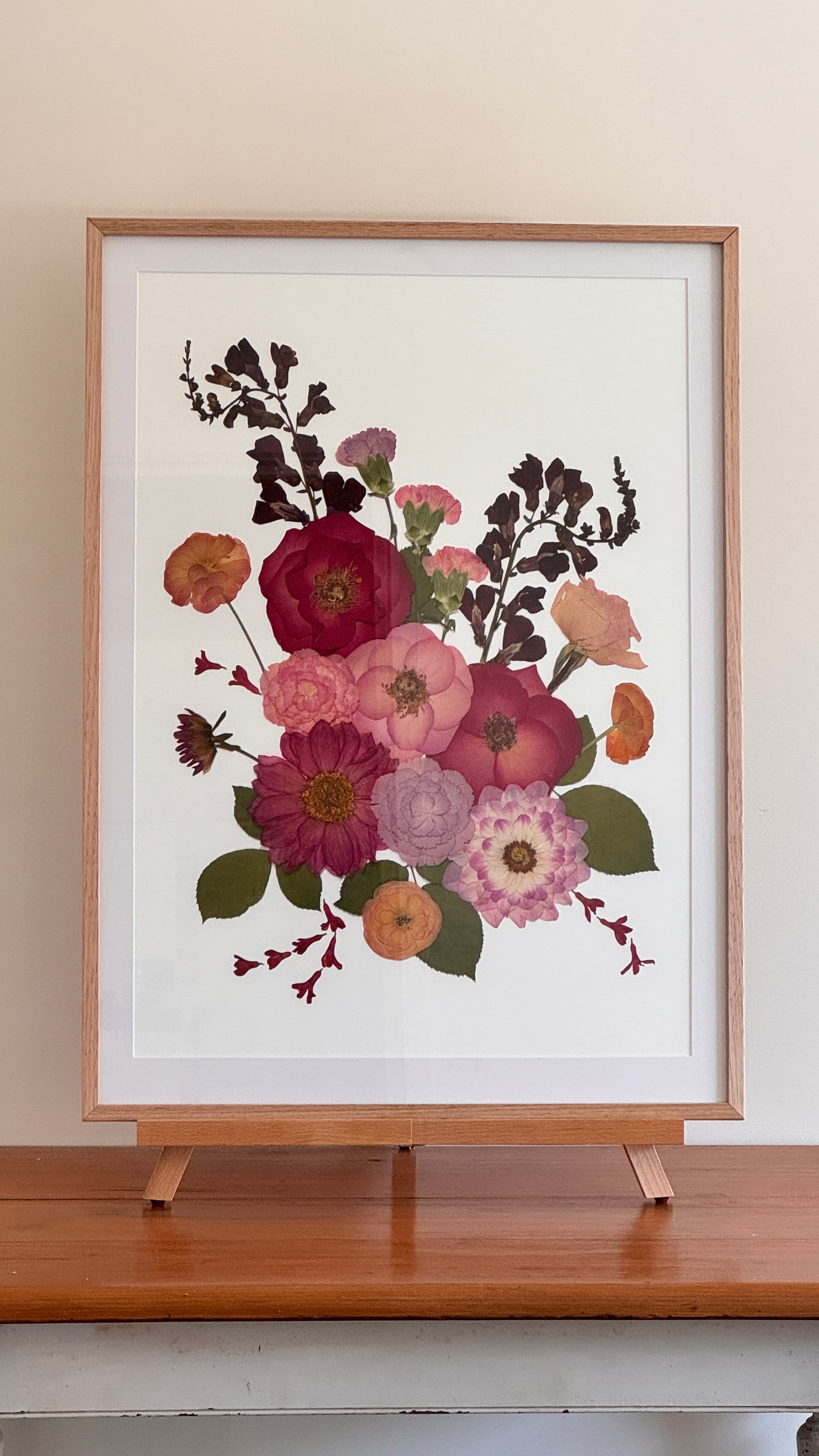 This pressed flower floral art print has been captured at extremely high resolution so that your guests viewing this piece will not be able to tell the difference between the original artwork flowers and the reproduction's flowers and it will retain it's colour for forever!