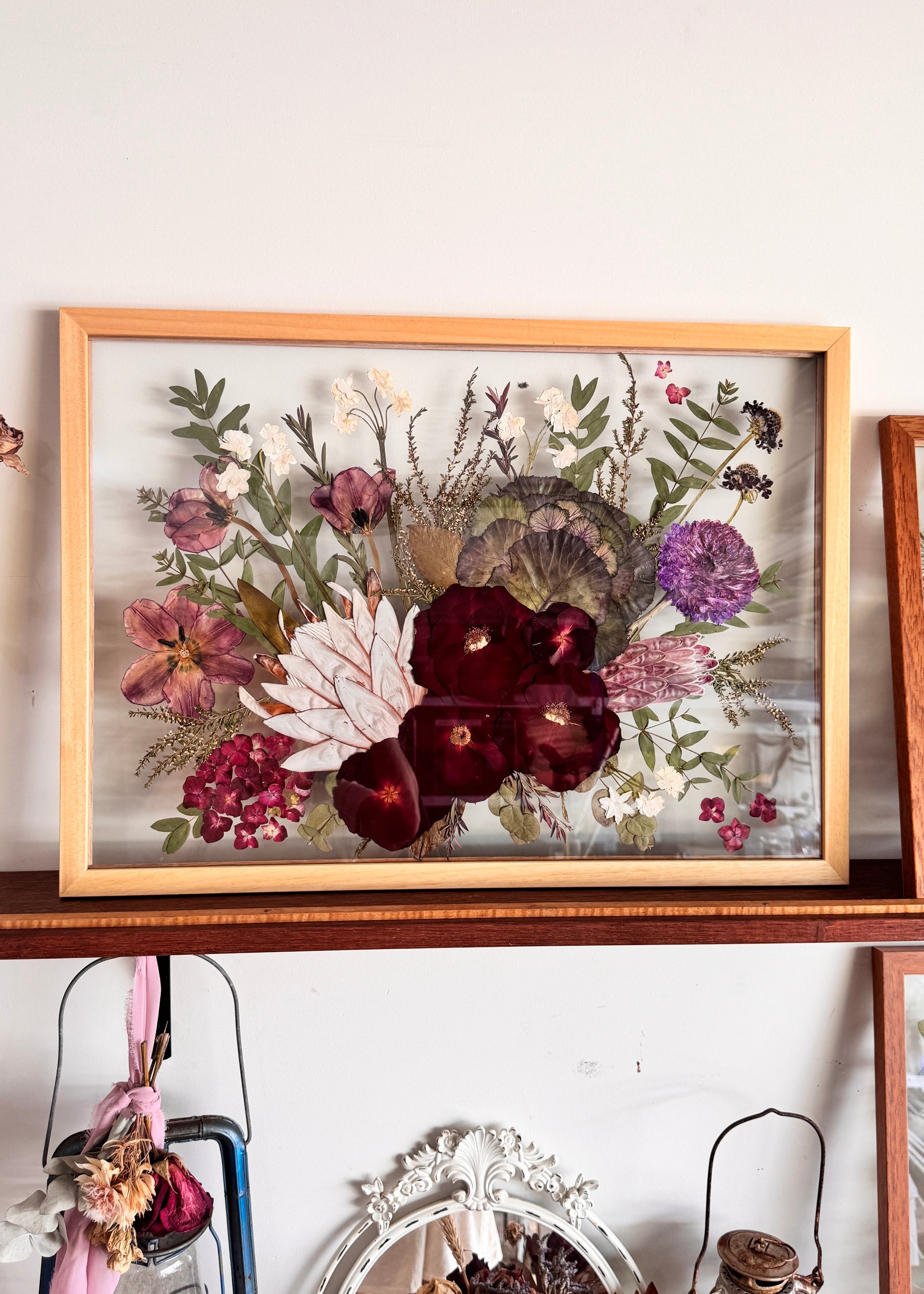 A breathtaking way to preserve your wedding bouquet, the A2 Timber Frame is designed to showcase larger floral arrangements in a beautifully handcrafted display. Made by a local Sunshine Coast framer using high-quality materials, this 42cm x 59.4cm frame allows your blooms to take center stage in a stunning, timeless keepsake.