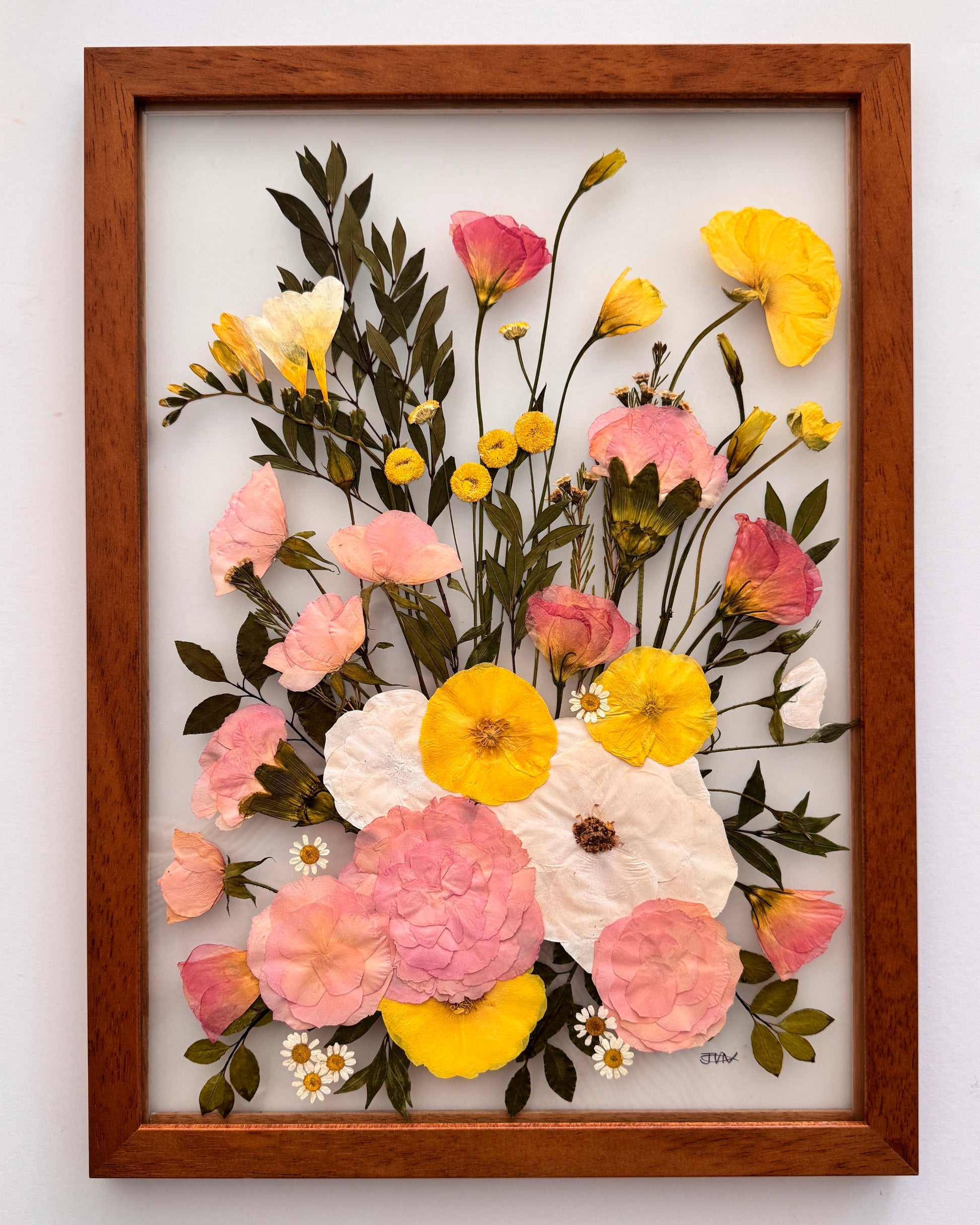 means they will have a limited lifespan. As the botanicals age, you may notice some changes in appearance. - Artwork is constructed with longevity in mind, however, some of the contents may shift during shipping or weaken over time resulting in debris or petals falling to the bottom of the frame.